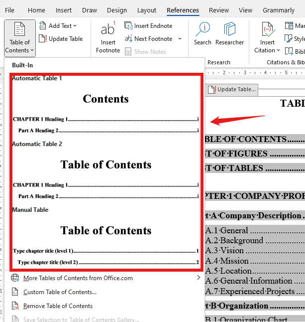 Table of contents, list of figures, list of tables, figures and tables captions, page numbering, margins, and more..